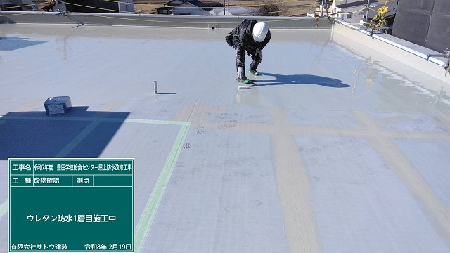 昨日(2/19)はウレタン防水1層目の作業でした。